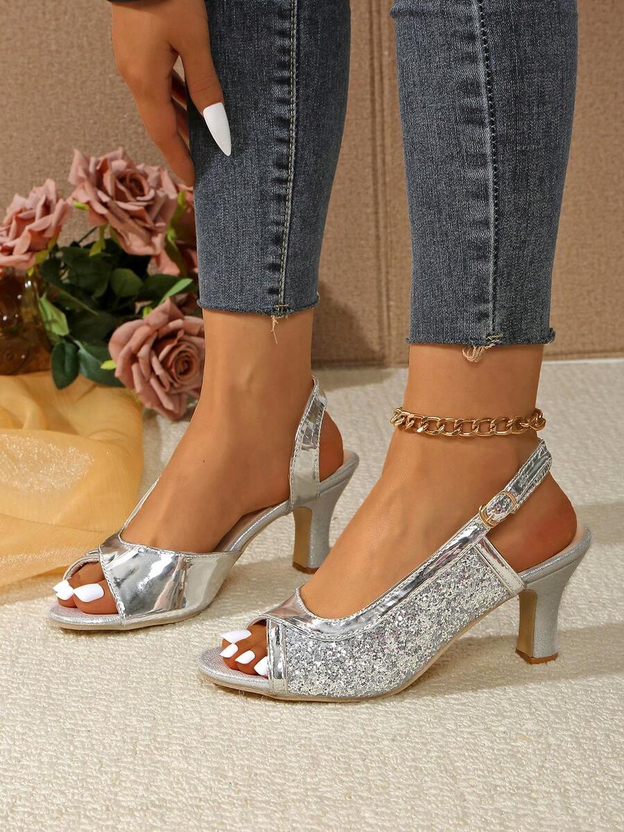 2026 Neue paillettenbesetzte, glänzende und bequeme offene Zehenhochabsätze. Modische Strandparty Damenhochabsätze. Silberne Hochabsätze. Goldene Hochabsätze. Schwarze Hochabsätze. Transparente Keilabsätze, bequeme Damenhochabsätze.