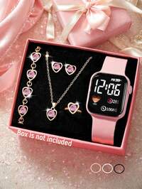 6 Stück Kinder Digital LED Touchscreen Uhr, M3 süßes Capybara Muster, DIY, geeignet für Grundschüler und Sekundarschüler, Mode & Lässig, vielseitig für Outdoor-Sport, bequem zu tragen, ideales Geschenk zum Kindertag, für Freunde, Schulanfang, Kinder Elektronik Uhr Set 6 Stück/Set süße und lässige LED Herz-förmige Digitaluhr für Mädchen, Silikonarmband, ausgestattet mit Schmuckset aus Armband, Halskette, Ring, Ohrringe, geeignet als Geschenk, für Schule, Abschlussfeier und andere Anlässe, passend für Studenten, perfekt für Alltag wie Schulanfang, Partys und Reisen, Geburtstagsgescenke, Abschlusszeit, perfektes Geschenk für Mädchen