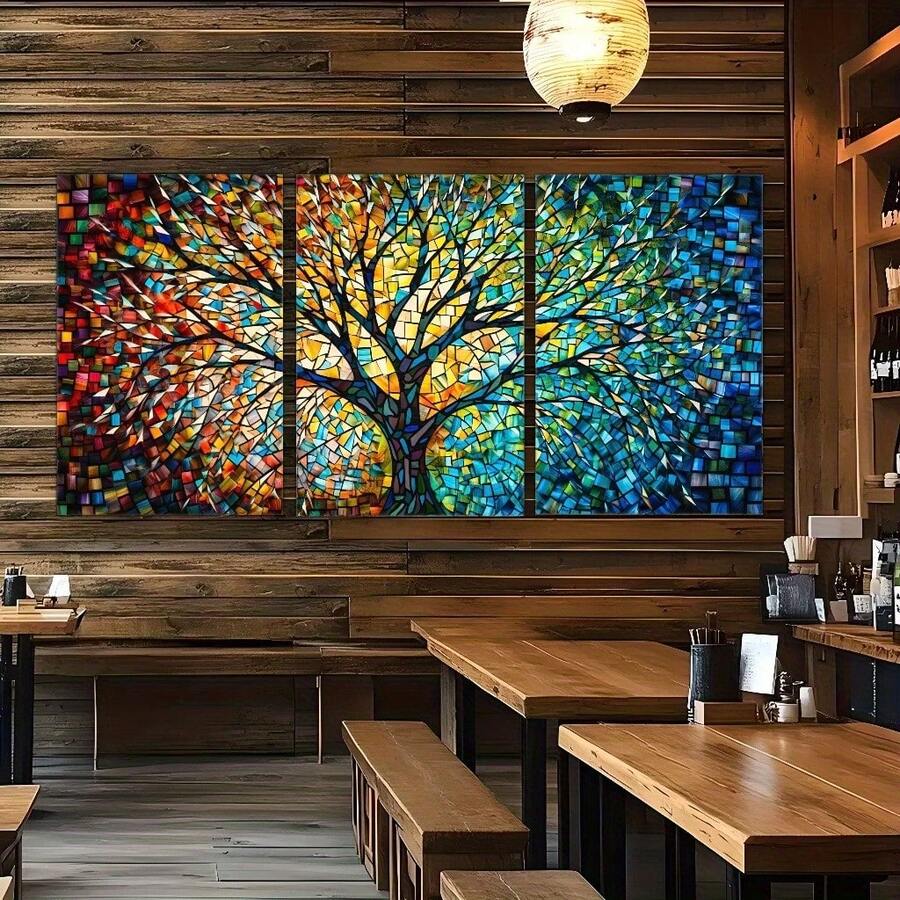 3er Set abstrakte botanische Art Deco Leinwanddrucke - Tinte auf Leinwand, Kiefernholzrahmen, Hochformat - Innen-/Außenwanddekoration für Wohnzimmer, Schlafzimmer, Büro, Küche, saisonales Frühlings-/Winterlandschaftsthema