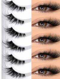 7 Paar halbe Wimpern mit transparentem Band, Katzenaugen-Schwanz, verlängerte Wimpern, natürliches Aussehen, wischig, falsche Nerz-Wimpern, flauschig, weich, falsche Wimpern für natürliches Make-up, geeignet für den täglichen Gebrauch, Partywear, Valentinstag Make-up