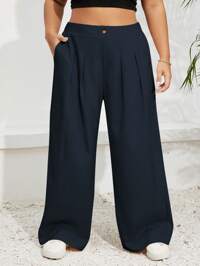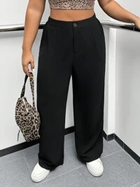 SHEIN PETITE CURVESHEIN PETITE CURVE Einfache Freizeithose mit Knopfleiste in Große Größen, geeignet für täglichen Gebrauch und Pendeln im Herbst/Winter, Frühling, Hochzeiten & Veranstaltungen, Abschlussfeiern, Lässig, Damenbekleidung für formelle Anlässe, schwarze Hose, Alltag, Pendeln, Abschluss, Studium, Lehrer, Besprechungen, Büro