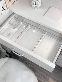 1/2/4/5/6/7 Stück transparente Schubladenorganizer Boxen, Make-up Aufbewahrungsboxen, Küchenutensilien, Snacks, Schulmaterial, Schubladenteiler Organizer Boxen, Schreibtischorganizer Boxen, praktisch zum Aufbewahren von Gesichtsmasken, Lippenstiften, Parfüms, Make-up Pinseln, Lidschatten, Pflegeprodukten, Schreibwaren, Raumdekoration, Heimdekoration, Badezimmerdekoration, Kosmetikorganizer Boxen. (Reinweiß, vermischt mit beigefarbenem Flaum)