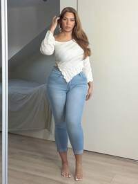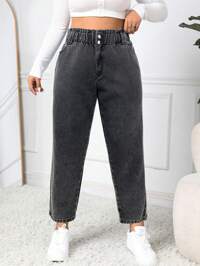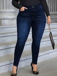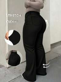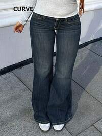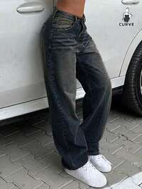 SHEIN ICON CURVEGroße Größen Denim Schlaghose, elegant, schick, formell, Ausgehen, Herbst für Frauen, Jeans, Jeans für Frauen, Kurven Jeans, Jeans für Frauen, schwarze Jeans, weite Jeans, Hosen, Cargohosen