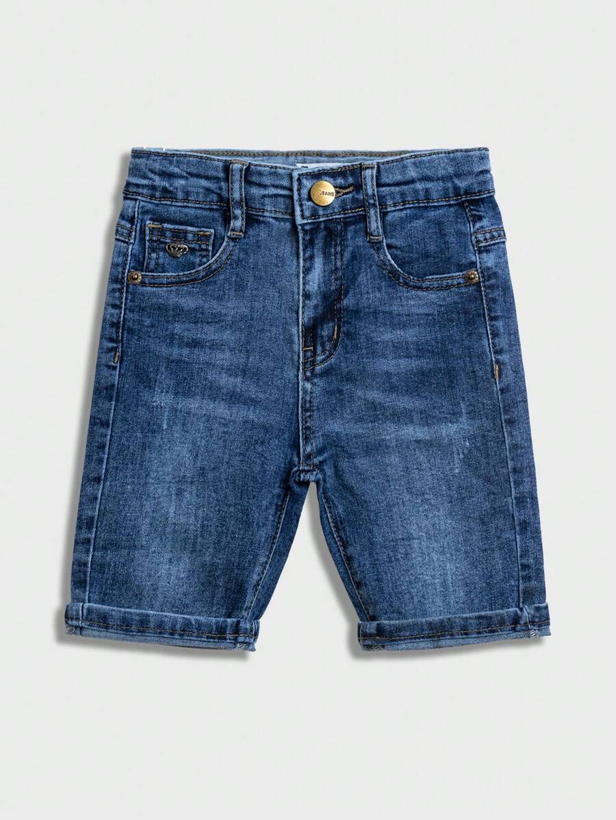 Sommer einfacher Stil Katzenschnurrbart Sprühmuster Krone Metalldekor Lässig Jeans Shorts für Kleine Jungen