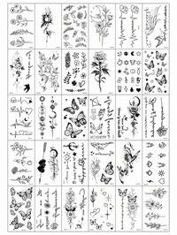 (30 Pack) Süße Fake Tattoos mit kleinen schwarzen grafischen Aufklebern, Sterne und Mond, Schmetterlinge, Blumen, englische Phrasen, Federn und andere grafische Designs, wasserfest und schweißfest, einfach zu verwenden, halten 2-3 Tage, sehr echt aussehende Fake Tattoos, geeignet für Valentinstag und Dates Minimalistische Blumen Revolutionäre Technologie Tattoos, Semi-permanente Tattoos, Temporäre Tattoos, langanhaltend, Frauen Fake Tattoos, Wasserresistent, Echter Tattoo Look, Pflanzlich, Kpop, Y2k, D168