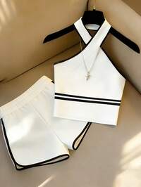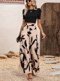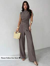 ZivahZivah 2025 Neue Herbst- und Winterkleidung für Frauen, lässiges Pendler-Outfit mit braunem, locker sitzenden Schulterfrei-Top mit unregelmäßiger Form + hochsitzende, weite Hose, Zweiteiler für Frauen, geeignet für Schule, Country-Konzert, Homecoming, Halloween, Weihnachten, Brunch, Ausgehen, Kirche, Reisen, Einkaufen