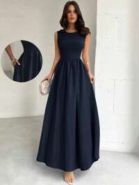 SHEIN BAEFirerie Damen blaues Maxikleid mit geraffter Taille im A-Linie Schnitt, geeignet für Valentinstag, Konzert, Aufführung, Date, Party, Hochzeitssaison, sexy, elegant, Pendeln, Schulstart, Urlaub, Strand, romantisch Silquee Braun Kaffeefarben Rundhals ärmelloses 3D besticktes gerafftes Taille schlankes sexy elegantes Kleid für Frauen, geeignet für Dates, Ausflüge, Nachtclub-Partys, Zusammenkünfte, elegante Partys, tägliche Dates, Cocktail-Partys, Partys/Dates/Bankette, Valentinstag und Nachtausgänge, Schwesternzusammenkünfte