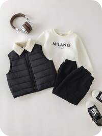 PipplinSHEIN 5-teiliges Winteroutfit für Kleine Jungen, Fleece-gefütterter Mantel, Wintermantel, gesteppter Mantel, Sweatshirts, Rundhalspullover mit Kapuze und Kordhose und Baumwollweste, warm und bequem, vielseitig für Alltag, geeignet für Innen, Außen, Alltag, Sport, Spiel, Party, Schulanfang, Herbst/Winter Jungenkleidung, Winterweste-Set für Kleine Jungen, thermogefütterte Weste für Kleine Jungen Herbst-Winter-Outfit Zweiteiliges Set, Herbst