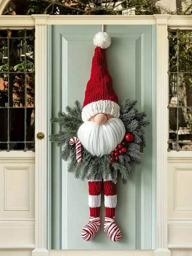1 Stück 2D Weihnachts-Zwerg Kranz Banner, ein Zwerg Kranz Ornament, ein weihnachtlicher Kranz Türhänger, Muster mit Kränzen und Zwergen, Details mit gestrickten Mützen und gestreiften Strümpfen, geeignet für Weihnachten, Zuhause, Büro und Türdekoration sowie Feiertags-Highlights, Weihnachtsdekorationen und Neujahrsdekoration. (Kein Kranz)